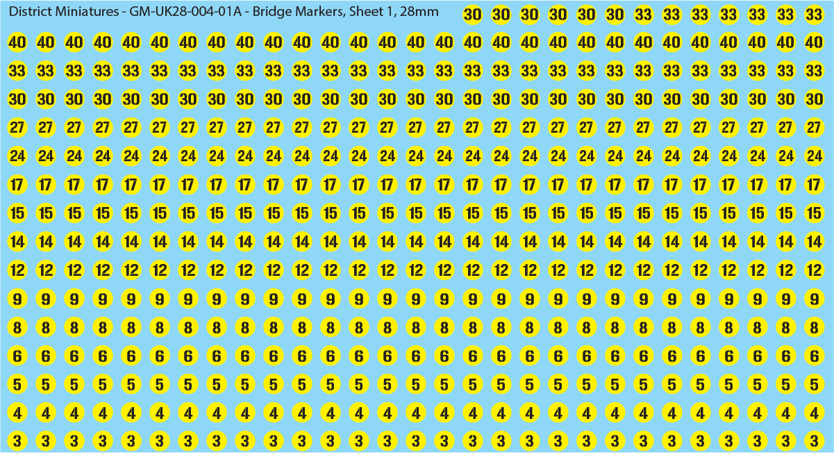 WW2 British - Bridge Weight Markers, 28mm Decals