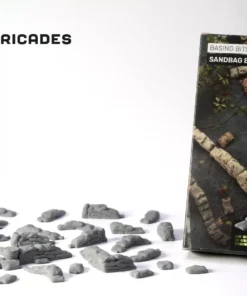 This box contains an assorted mix of thermoplastic Sandbag Barricades Basing Bits.