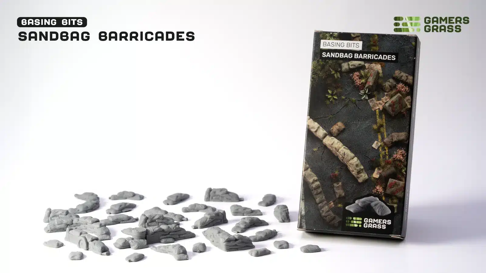 Sandbag Barricades Basing Bits are scaled replicas of urban war background props, for all times, from Great Wars to present and future conflicts. An assortment of different sized piled up sandbags will provide the right assets for your barricades and battle fences. They are best used combined with GamersGrass Urban Warfare Basing Bits.