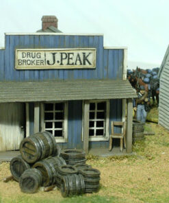 This building represents a weather board North American Store. It can be used from 1800-1900 or even a little before or after those dates. It can also be built as a cabin or farmhouse as some parts are from the North American Cabin or Farmhouse kit RPB1.