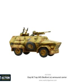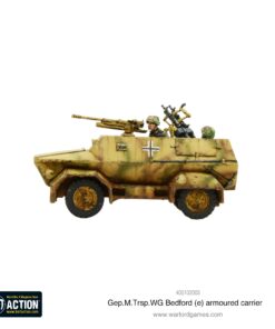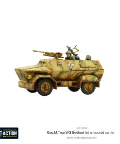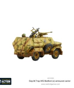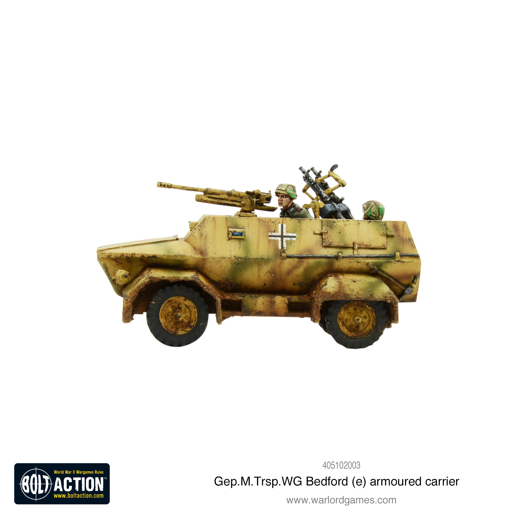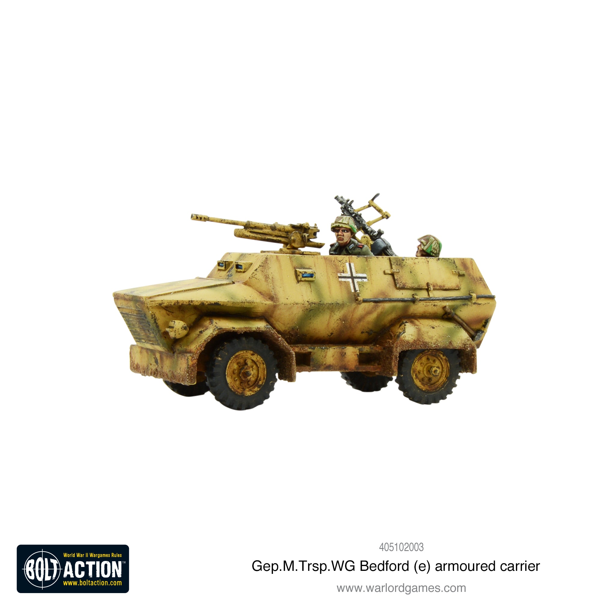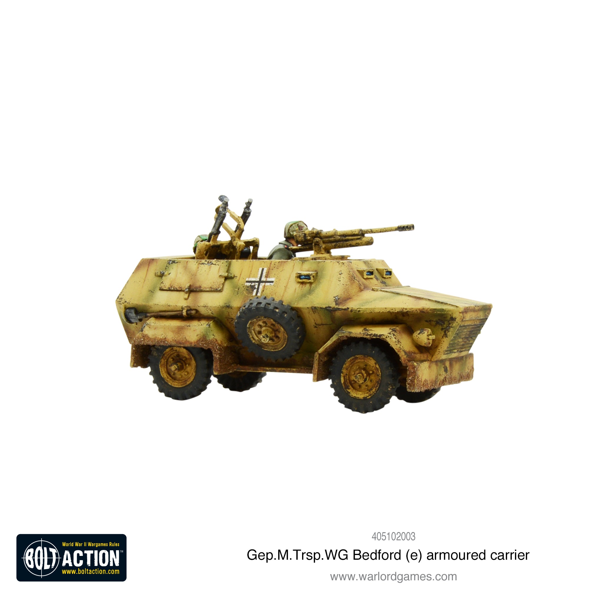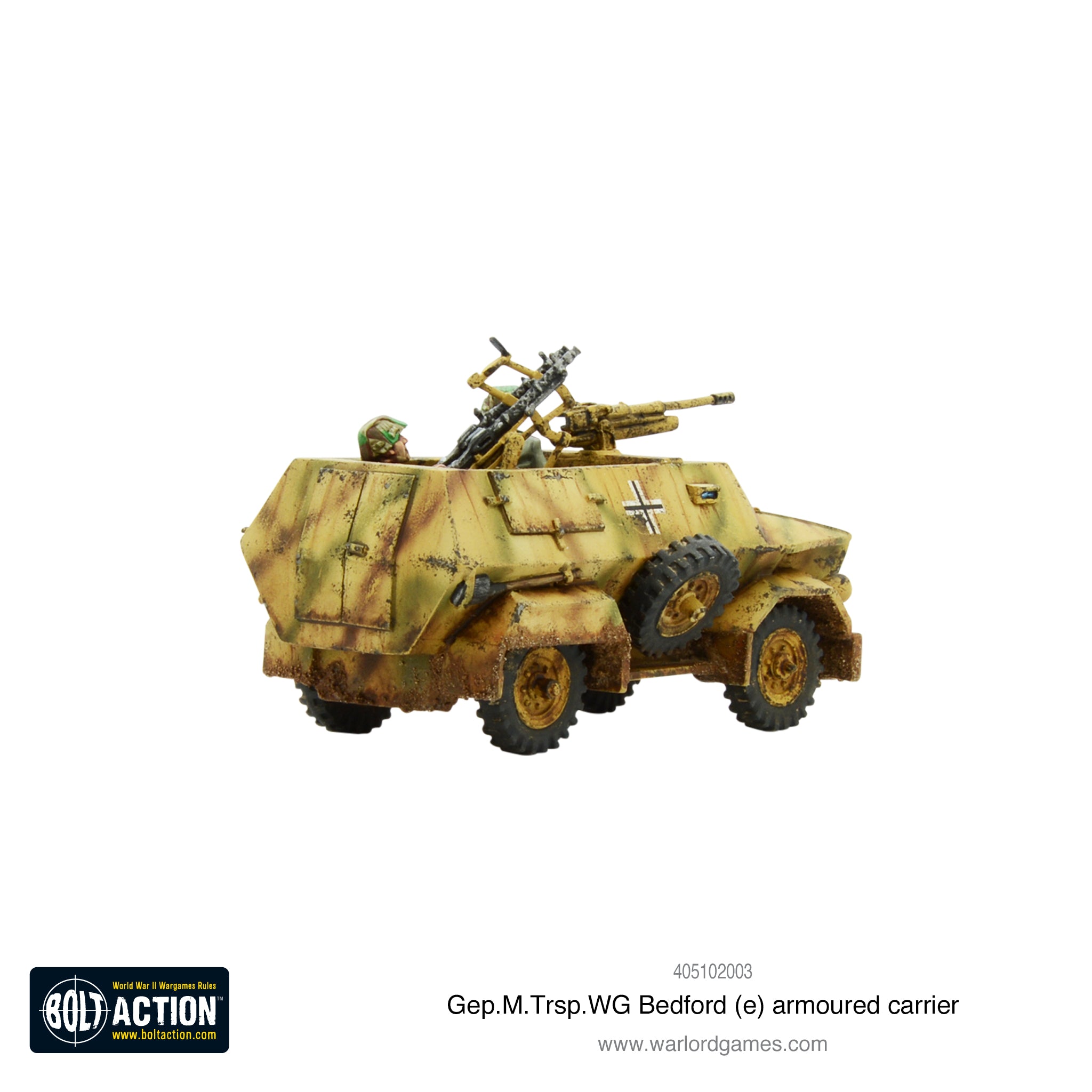 After the early Campaigns of World War II, the British Expeditionary force left behind much equipment during their retreat from the front, including many Bedford trucks. Later in the war these vehicles began to appear and several were converted with armour plating and mounted different type of weapons, giving birth to the Gep.M.Trsp.Wg Bedford (e), which saw use in the defense of Italy and Germany in the latest phases of the war.