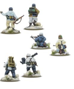 This box provides you with three infantry weapons teams to reinforce your Bolt Action Fallschirmjäger collection, all clad in thick winter kit. A lethal Panzerschreck anti-tank launcher menaces Allied armour, while a flamethrower team, the backbone of Engineer Platoons, stands ready to incinerate anything before them. Supporting both from afar is the sniper team, armed with a unique scoped variant of the FG 42 paratrooper’s rifle, the bane of enemy officers!