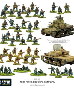 Helmets, sun helmets and caps further allow for temperate or tropical troops to be built so you can field your army in the dusty deserts of North Africa, the islands of the Mediterranean, the harsh cold of Russia, or the Italian home front. Medium mortar, machine gun and anti-tank gun support elements provide additional firepower. Providing armoured support is the M13/40 medium tank which can alternatively be built as a Semovente 75/18 assault gun.